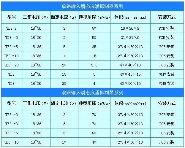 3、 额定工作电流下能承受80V/50ms 或50V/100ms 浪涌冲击;